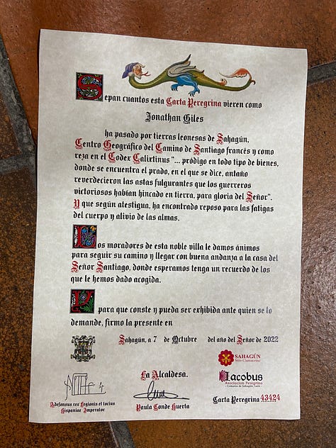 Another tough day - this one earning its place in this adventure as truly representative of the Meseta. Starting early, we were soon walking in that open, almost featureless Meseta landscape. I have to admit, to me, this terrain is glorious, and as an East Coast boy, I can’t get enough of the long vistas and endless skies that stretch forever.