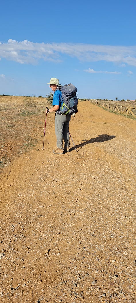 Hey everyone, here is my latest chapter of hiking the Camino de Santiago. In the previous chapter Marlene, my sister-in-law, and I had just passed the halfway point of our adventure. This chapter focuses on one of our final days on the Meseta, a high plains, one-hundred-and-fifty-mile stretch of hot, shadeless, farmland roughly between the cities of Burgos and Leon. Dear readers, my delay in telling this tale has been due to writing about hiking the one-thousand, one-hundred and seventy-five-mile Mountains-to-Sea Trail in North Carolina. Returning to the Camino to complete this story brings back daily reminders of the stress of hiking fifteen to twenty miles a day and the physical impact of maintaining this pace on our bodies.
