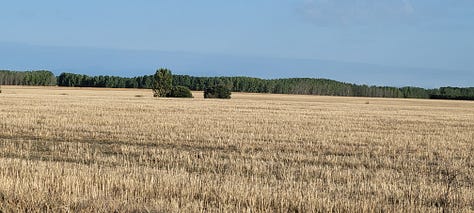 Still, even with black flies picking up as the morning progresses and the heat rises from the fields, we realize we are walking across a beautiful landscape of farmland and feel, finally, like this is the point of taking the alternative route. Solemnly, perhaps, Marlene and I soak in the beauty of where we are, and, in turn, agree that we are satisfied with our decision.