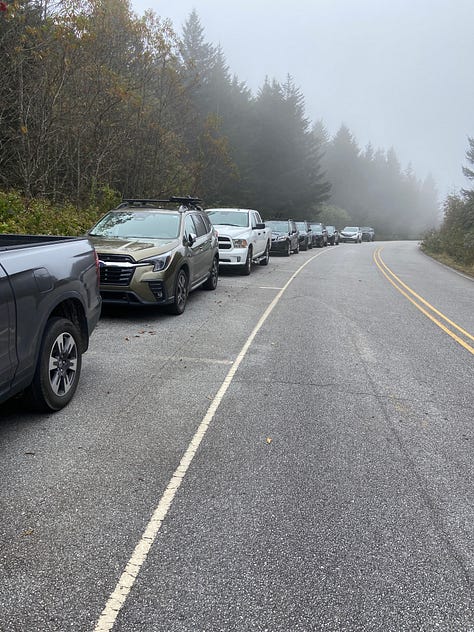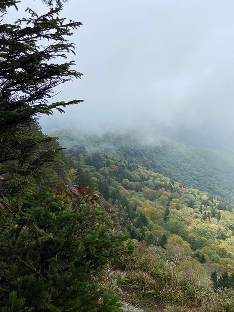 We reach Waterrock Knob at nearly six thousand feet and quickly push to get on the trail. I remind myself while at the car to take a moment to be sure I have everything I need beyond my thirty-pound pack. Transitioning to the trail is always disjointed—exciting and anxiety-prone—and this hike proves to be no different.